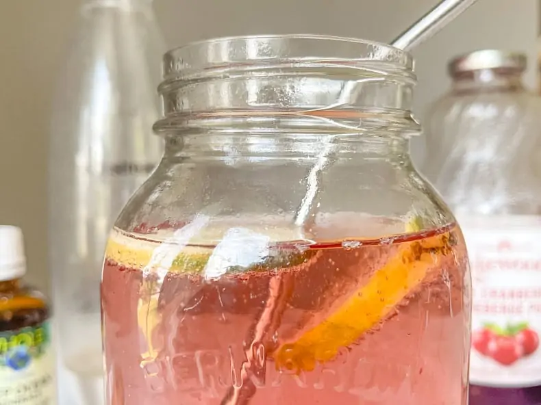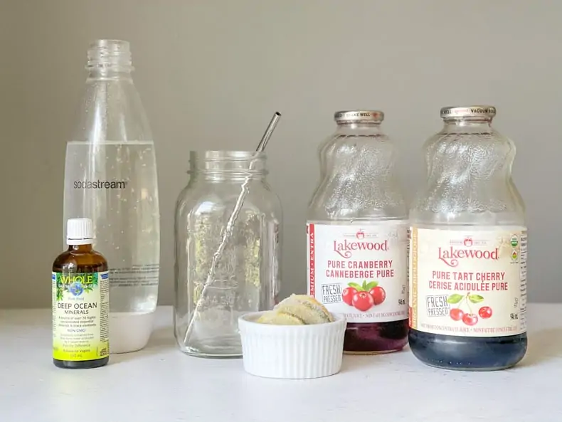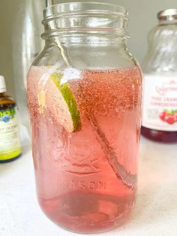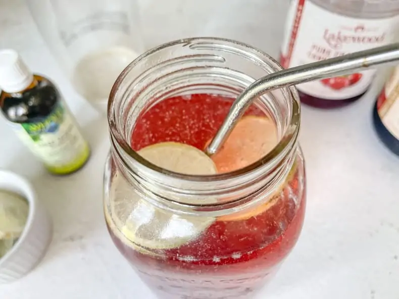 The carbonation is key for me because I don’t taste the mineral drops at all when it’s bubbly. When I make this same drink, only with still water, I taste the salty aftertaste of the drops. I don’t know why it works, but it does. Nonetheless – the carbonation isn’t necessary for any health reasons so if you use regular water that’s fine.